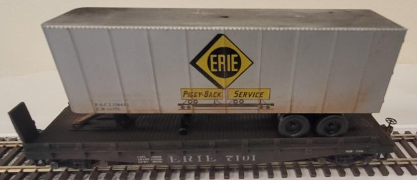 Richard Reichenbach brought an Erie TOFC with trailer advertising the “Piggy-Back Service,” weathered to resemble a prototype photo he also displayed with the car.