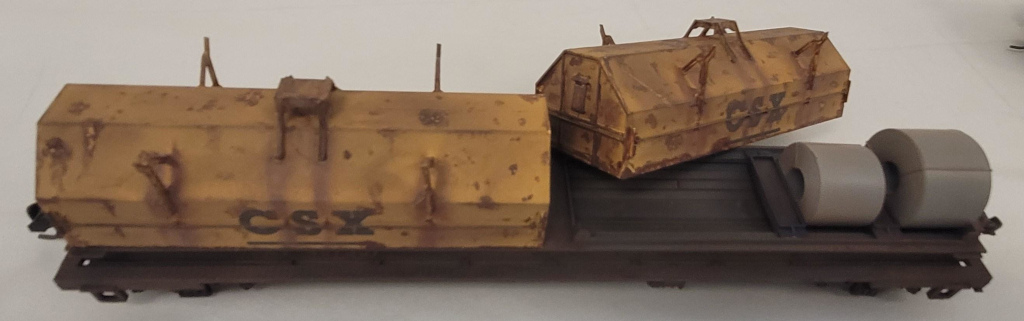 Vinny Kaplack entered a CSX Cushion Coil Car, which was a Walthers HO scale kit from the early 2000s, to which he added metal wheels, Kadee couplers, and the steel coil load. He finished the model by weathering it using three different techniques: airbrush, powders, and chalks.